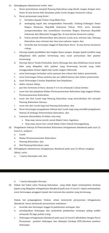 - surat izin dari Lurah bagi Pamong Kalurahan yang mencalonkan diri menjadi Pamong Kalurahan lainnya;