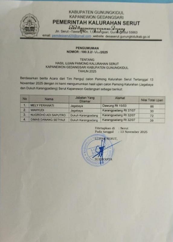 - Hasil Penelitian Kelengkapan dan Keabsahan Administrasi Bakal Calon Pamong Kalurahan Serut